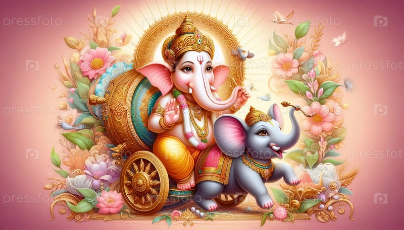 Господь Ганеша со своей мышью Ваханой, Ai generated image A