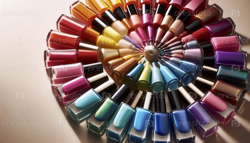 Глянцевый лак для ногтей Коллекция бутылок с лаком, Ai generated image