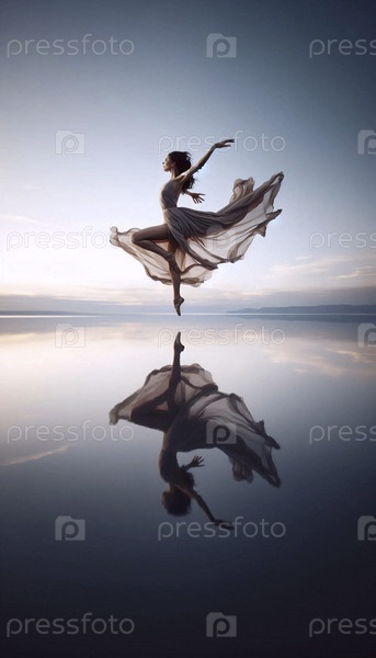Современный танцор, прыгающий над водой, Ai generated image