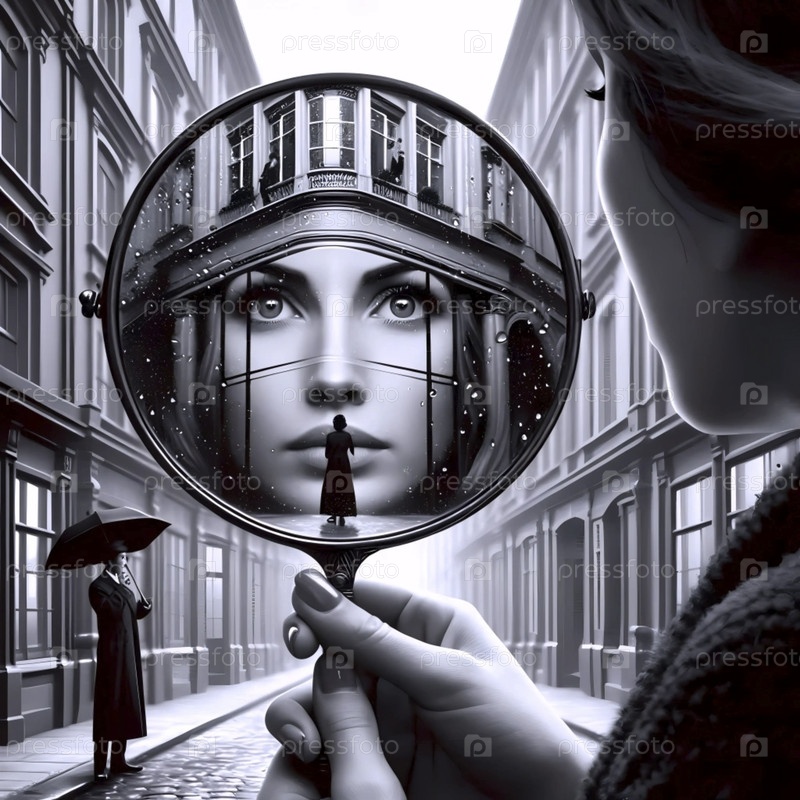 Винтажный дождливый зеркальный искусство, Ai generated image