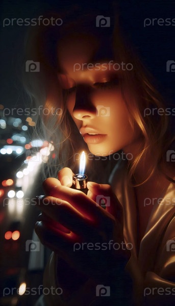 Близкий план пламени, освещающего ее лицо, Ай создала изображение