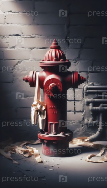 Обувь Pointe висит на пожарном гидранте за кулисами, Ai generated image
