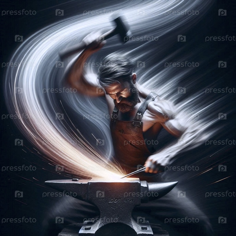 Фотография с длительной экспозицией, захватывающий удар молоток кузнеца, Ai generated image