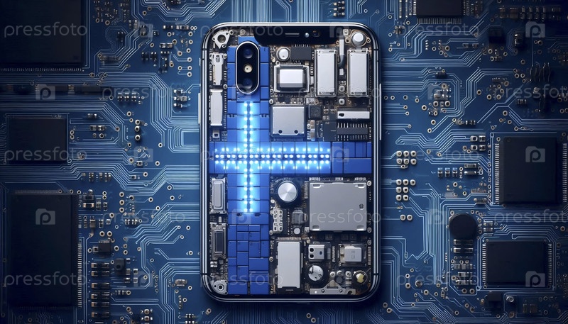 Флаг Финляндии из элементов мобильных технологий, Ai generated image A