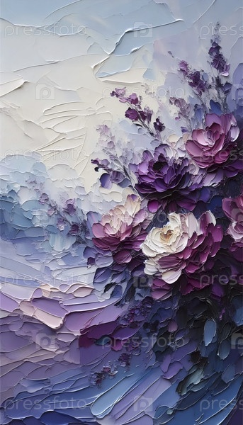 Абстрактная фиолетовая цветочная пейзажная живопись, Ai generated image