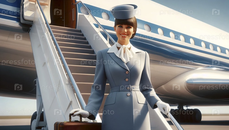 Стюардесса 1960-х годов на ступеньках самолета, Ай создала образ
