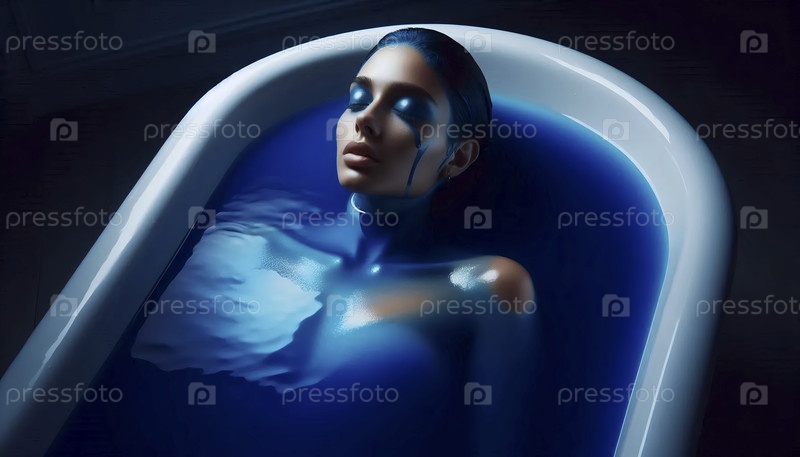 Ванна ультраморского акварели, Ai generated image A