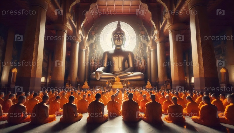 Будда с монахами, Ai generated image