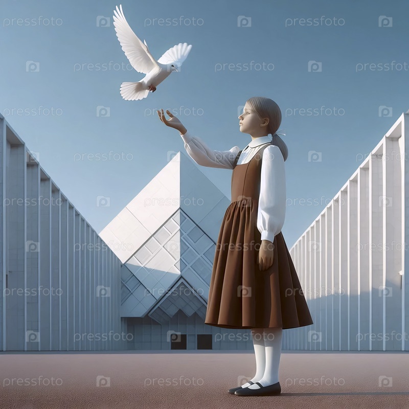 Советская школьница освобождает голубя, Ai generated image