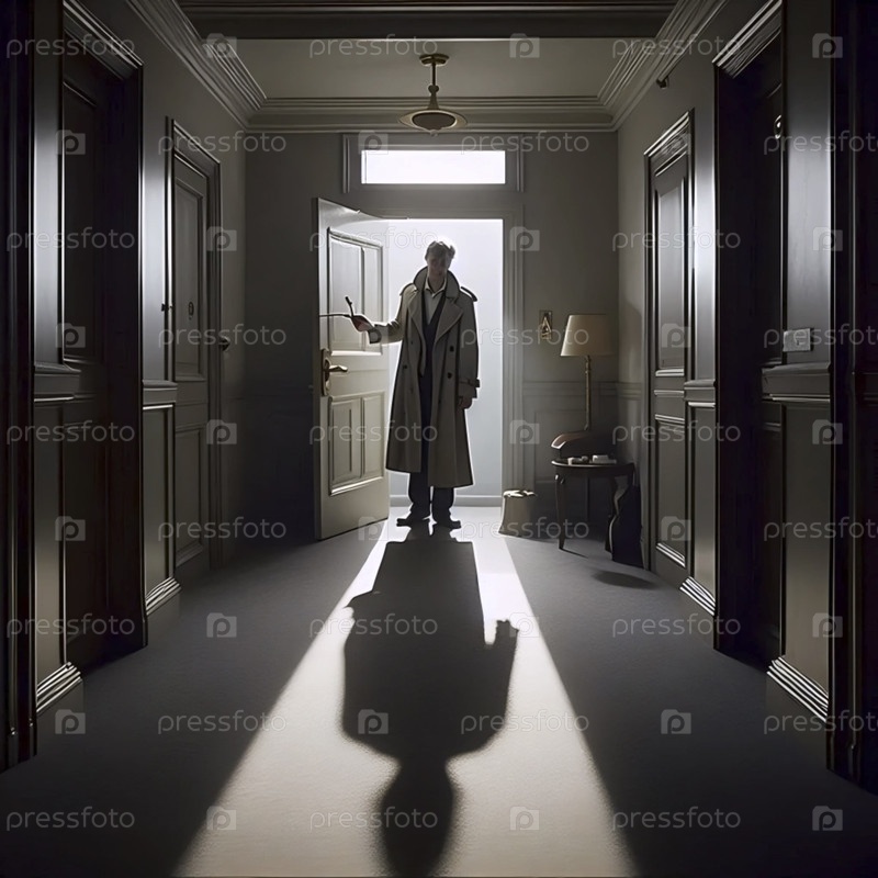 Черно-белый снимок нового мужчины в фойе отеля, Ай создал изображение