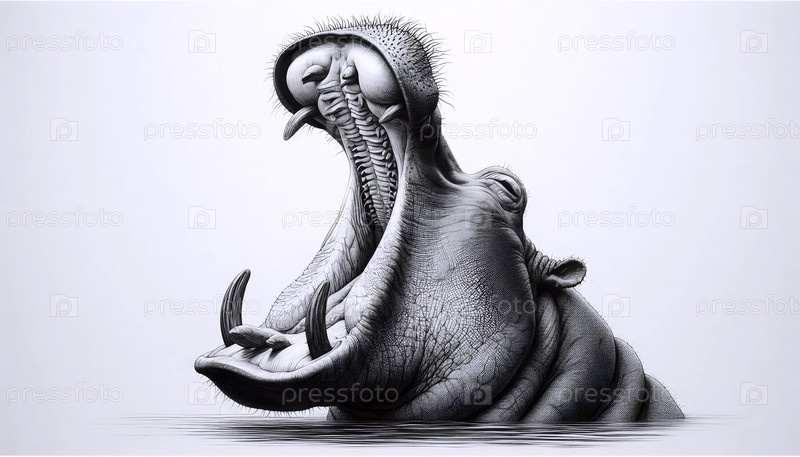 рисунок чернил от зевающего бегемота