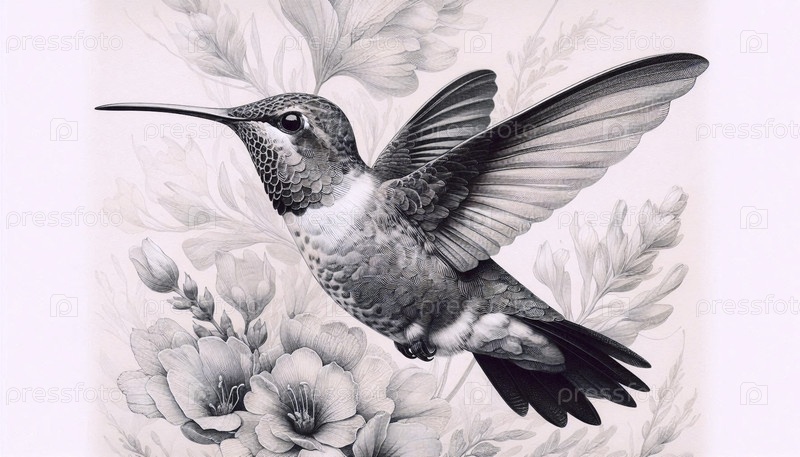 летящий колибри чернила рисунок