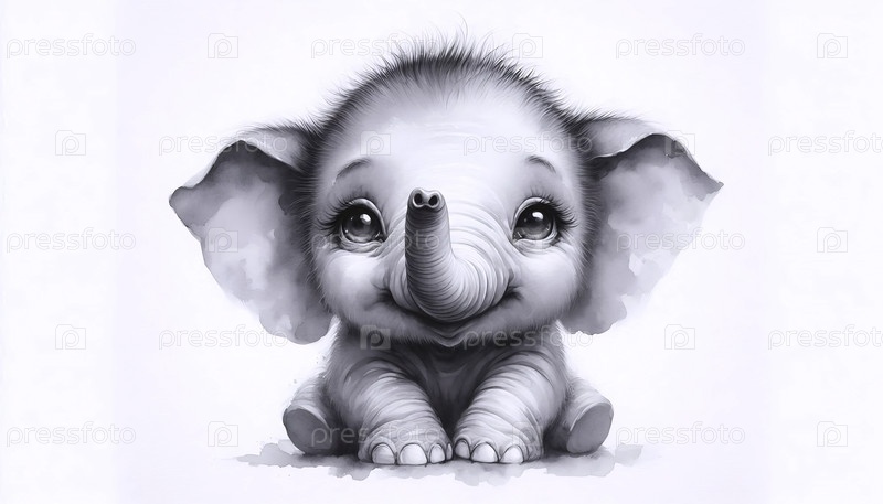 Очаровательный слон акварельный художественный печат, Ai generated image