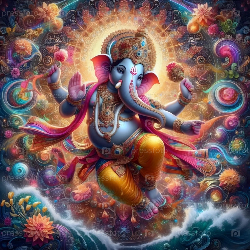 Господь Ганеша в танцевальной позе, Ai generated image A