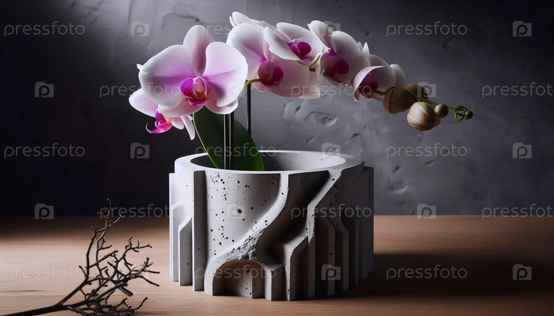 Орхидея в бетонном горшке, Ai generated image