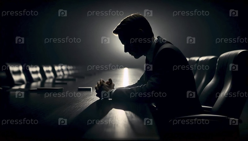 Более широкий снимок, показывающий изолированную фигуру за столом в контексте одиночества