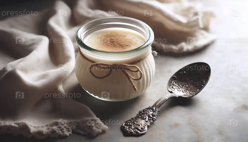 Простой ванильный пудинг в стеклянной банке, Ai generated image