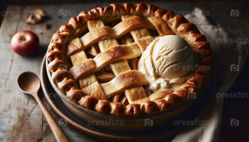 Рустичный домашний яблочный пирог на столе, Ai generated image