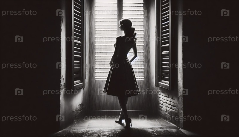 Винтажная леди ждет печати окна, Ai generated image
