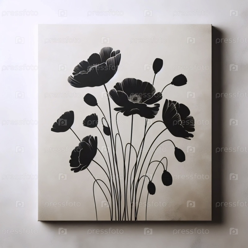 Современный черный цветочный стеновой печат, Ai generated image