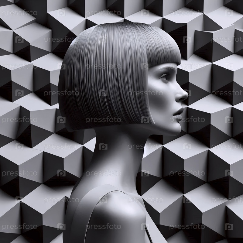 Геометрическая стрижка боба против геометрической стены, Ai generated image