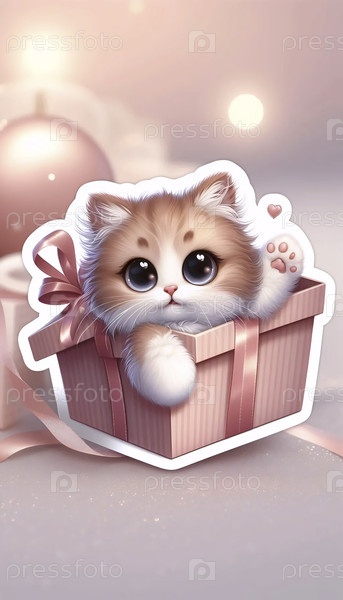 Игровой кот, заглядывающий из наклейки подарочного ящика, Ai generated image