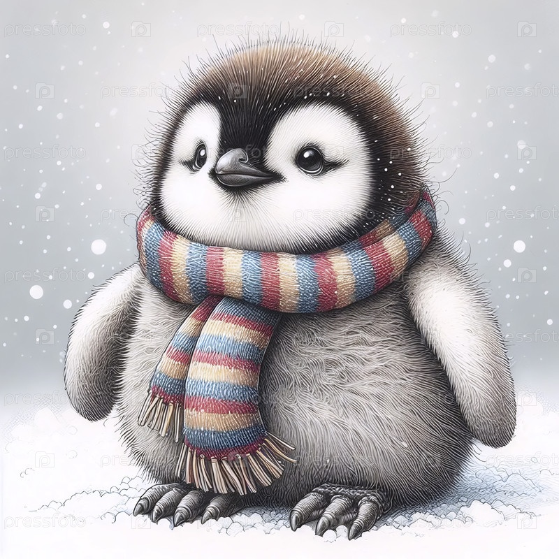 детский пингвин с чернильным рисунком шарфа
