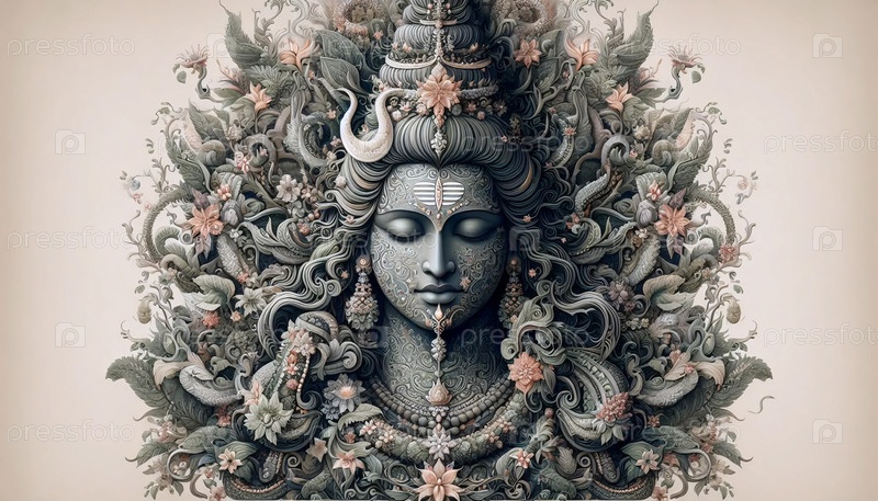 Господь Шива с цветочными орнаментами, Ai generated image A