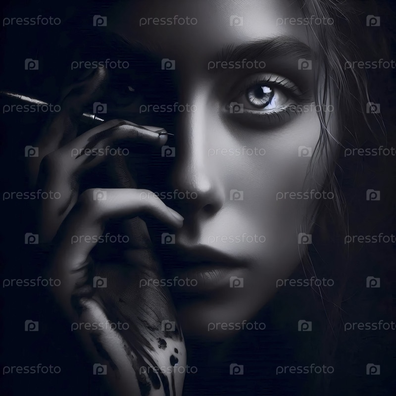 Трехчетверточный портрет, освещенный капризным классическим освещением Рембрандта, Ai generated image