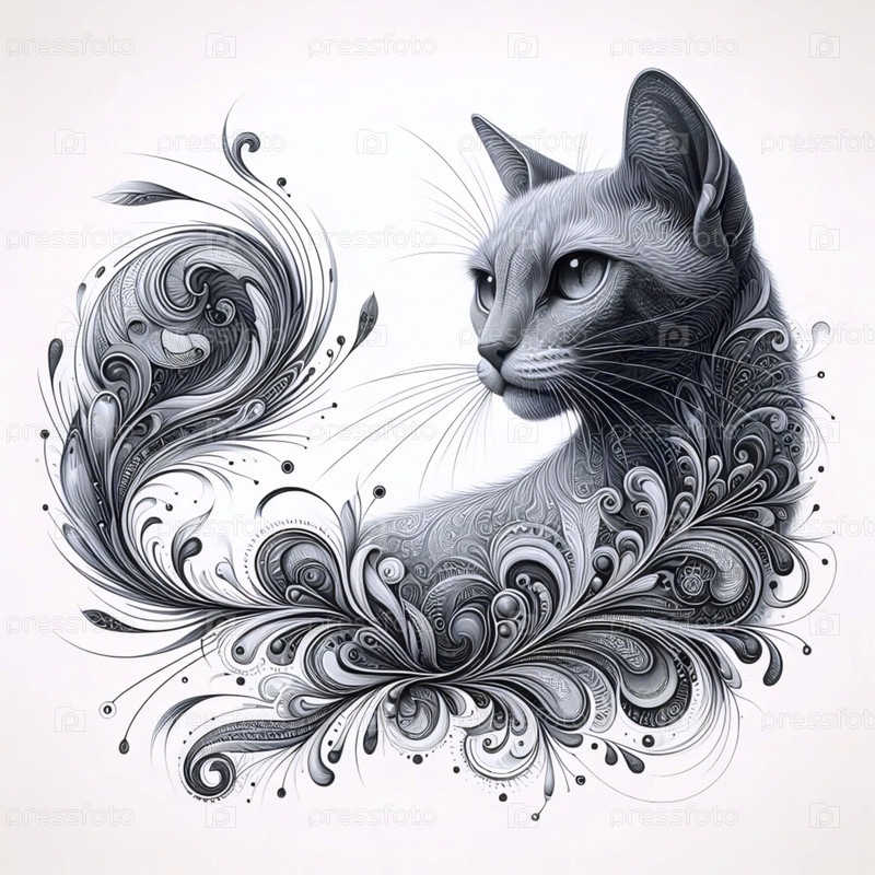 Художественный иллюстративный принт кошки, Ai generated image