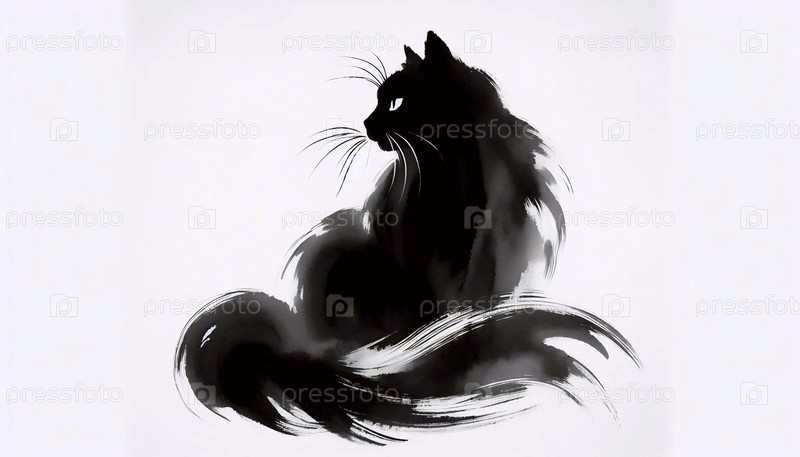 Минималистическая суми-э чернильная живопись кота, Ai generated image