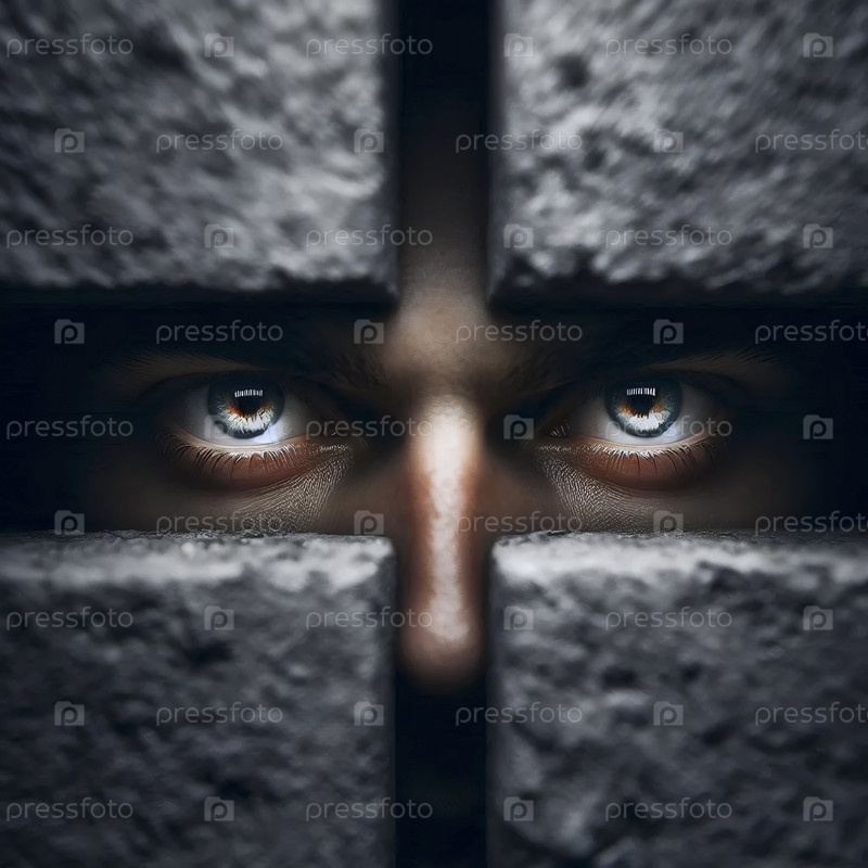 Глаза, заглядывающие через узкую щель в стене, Ai generated image