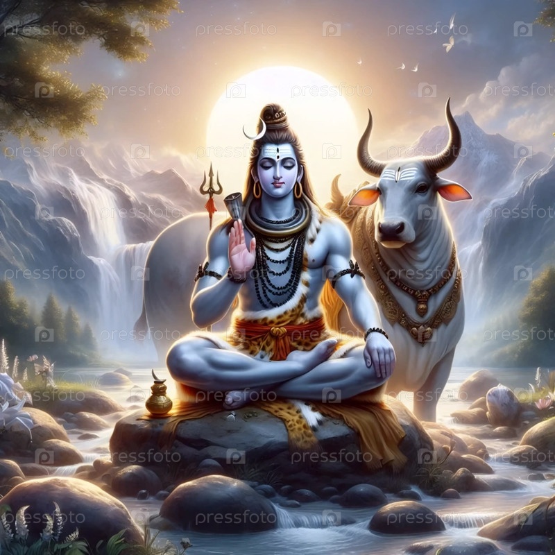 Господь Шива со священным быком Нанди, Ai generated image