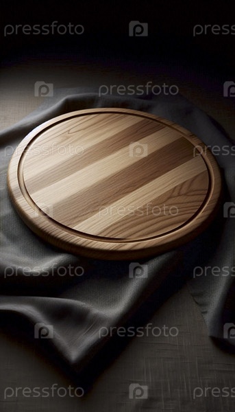 Большой пустой прямоугольный деревянный макет доски для подачи пищи, изолированный на темном льняном салфетке, Ai generated image