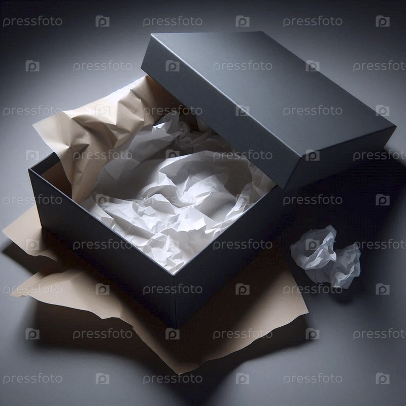 Матовый макет подписной коробки, открытый и пустой, с тканевой бумагой, Ai generated image