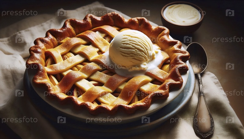 Рустичный домашний яблочный пирог на столе, Ai generated image