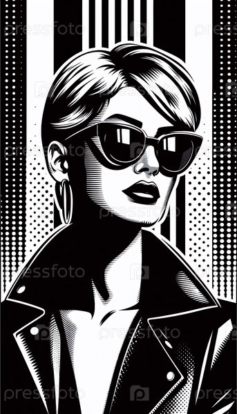 Винтажный портрет солнцезащитных очков поп-арта, Ai generated image