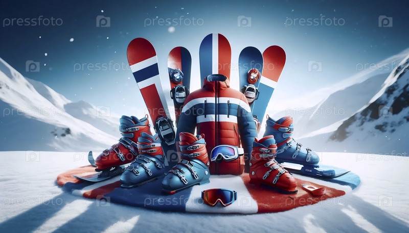 Норвежский флаг в зимнем спортивном оборудовании, Ai generated image
