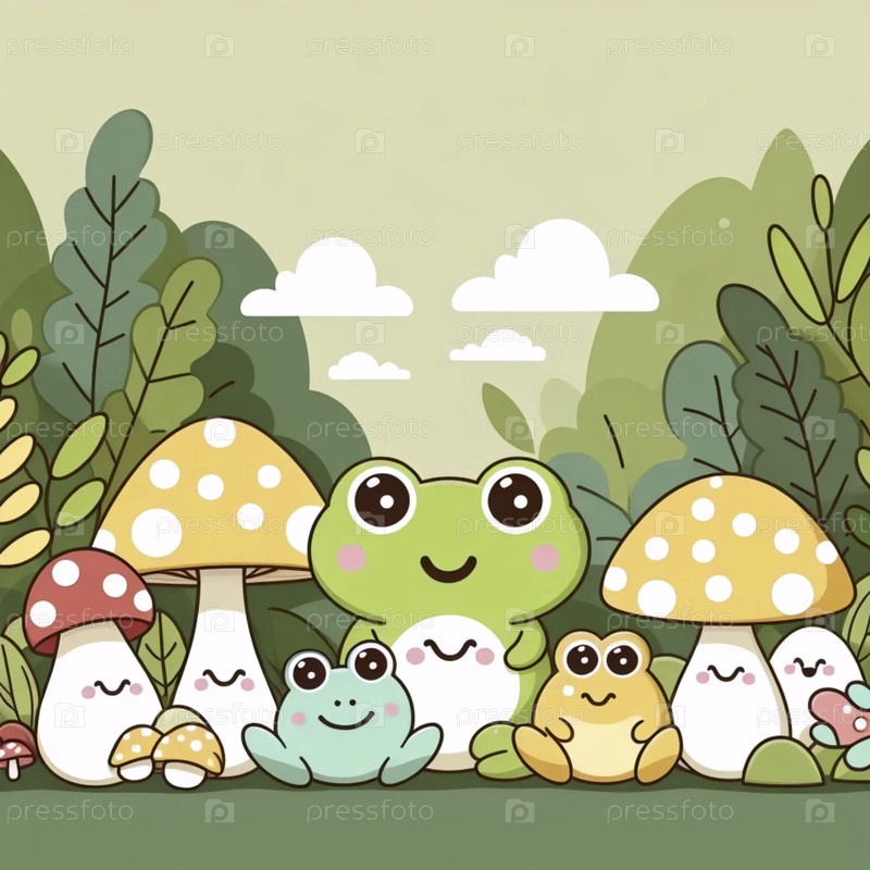 A kawaii mushroom and frog friends print, Ai generated image Аи создал изображение