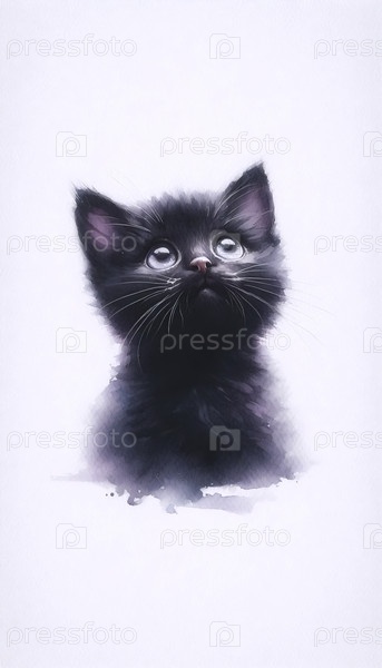 Милая акварельная живопись просящего кота, Ai generated image