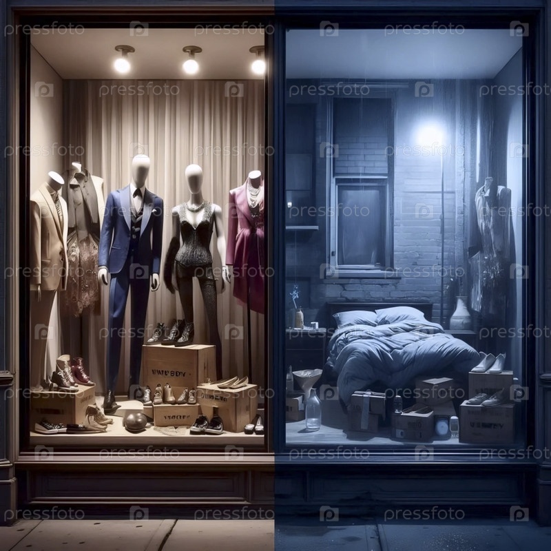 Отражение бедной комнаты в витрине магазина ночью, Ай создал изображение