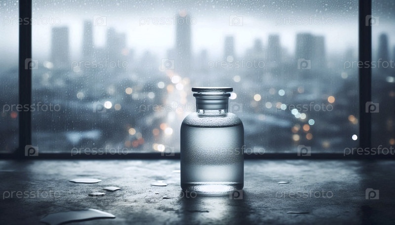 Одинокий макет пустой бутылки с парфюмом на туманном подоконнике, Ai generated image