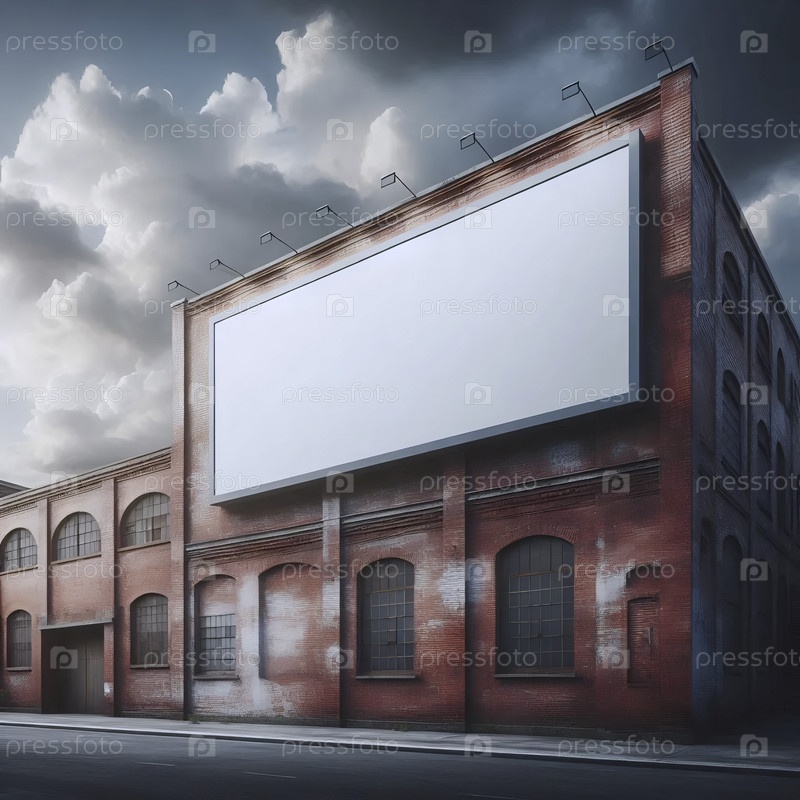 Из пустого макета прямоугольной рекламной доски на кирпичном фасаде промышленного здания Ай создал изображение