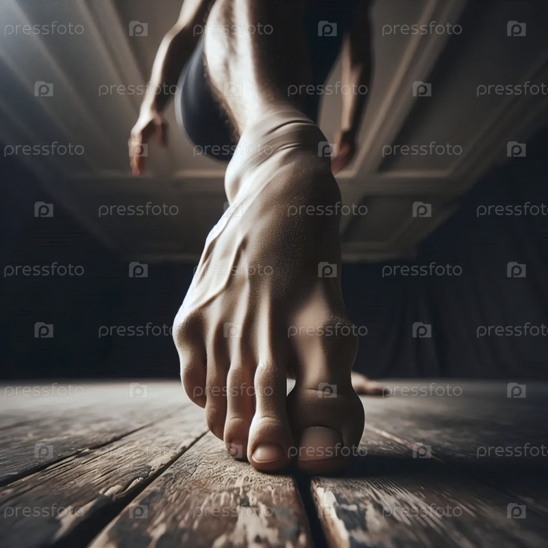 Снимок снизу, нога показывает на изношенном полу, подчеркивая нагрузку, Ai создал изображение