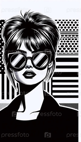 Винтажный портрет солнцезащитных очков поп-арта, Ai generated image