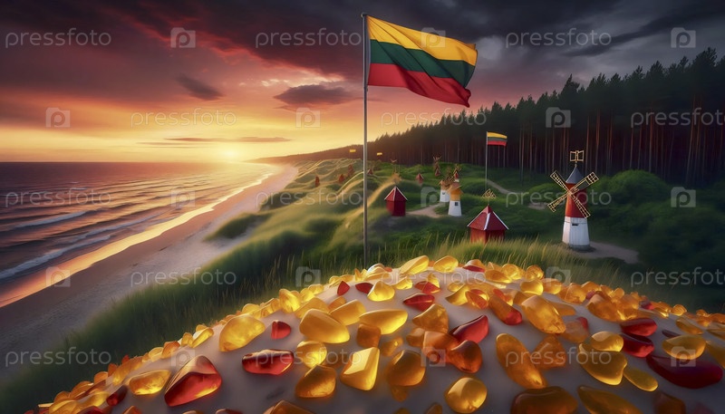 Литовский флаг в янтарном побережье, Ai generated image