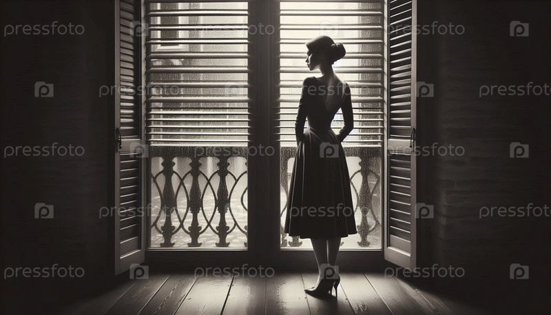 Винтажная леди ждет печати окна, Ai generated image