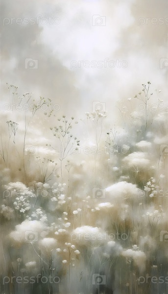 Романтический пейзаж полевого ландшафта на холсте, Ai generated image