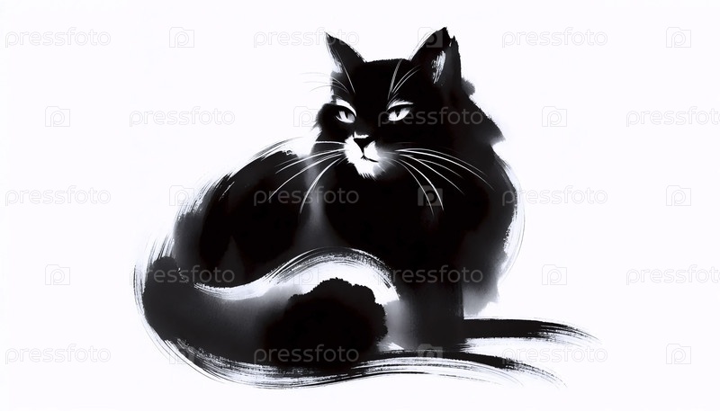 Минималистическая суми-э чернильная живопись кота, Ai generated image