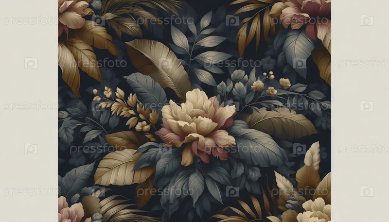 Ботанический шаблон темно-синий горчичный розовый ткань цветочная печать, Ai generated image